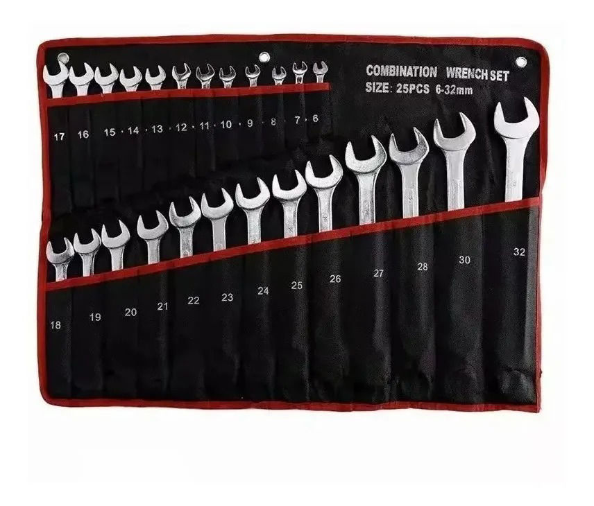 Juego de llaves combinadas con 25 piezas en tamaños de 6 a 32 mm.