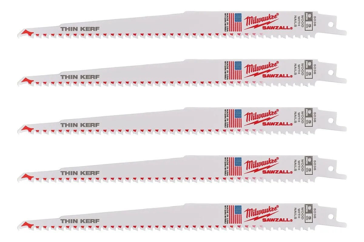 KIT 5 HOJAS SIERRA SABLE MADERA CON CLAVOS 4800-5036 MILWAUKEE
