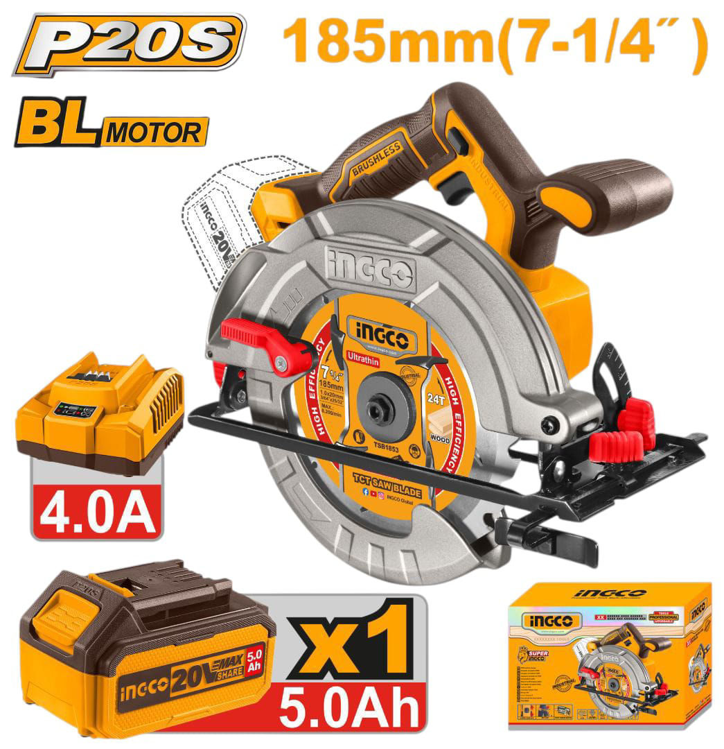 SIERRA CIRCULAR A BATERÍA 7. 1/4" 20 V CON BATERÍA, CARGADOR Y ACCESORIOS INGCO