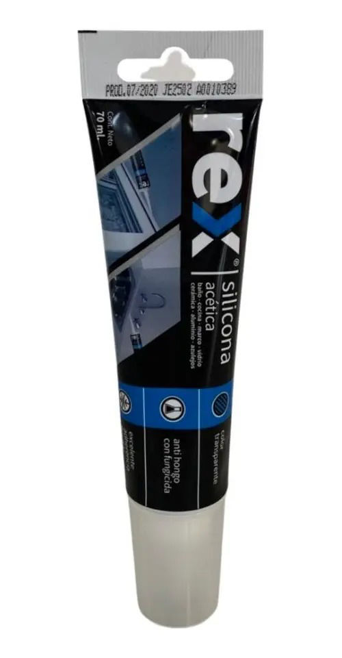 Rex Silicona Acética es un adhesivo sellador tixotrópico, mono-componente, de uso general, bajo módulo, anti-hongos y de curado acético. Su curado ocurre en temperatura ambiente y en la exposición a la humedad del aire.