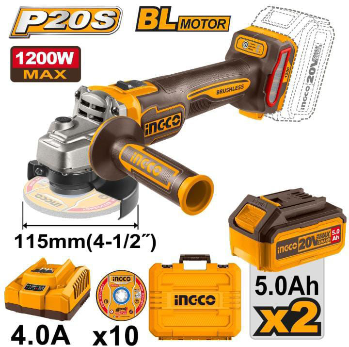 AMOLADORA ANGULAR 4.5" BATERIA 20V INGCO
