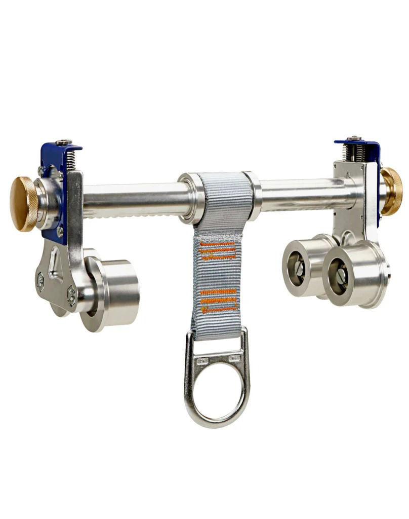 - Punto de anclaje móvil deslizante utilizado en estructuras de vigas metálicas, proporcionando